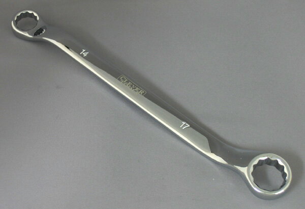 45°オフセットの付いたスタンダードなメガネレンチです!CLEVER 45°メガネレンチ 14x17mm 価格: 1,050円 レビュー評価:5.0 レビュー数:1 先端リング部が12ポイントなので、細かい動作での締め付けに大変効果的です。 両サイドに45°のオフセットが付いていますので、障害を避けながら作業を行うことが出来ます。 表面はメッキ加工されておりますので、汚れも簡単に拭き取れます。 全長:245mm 重量:200g45°オフセット・メガネレンチ! Supported by 楽天ウェブサービス |